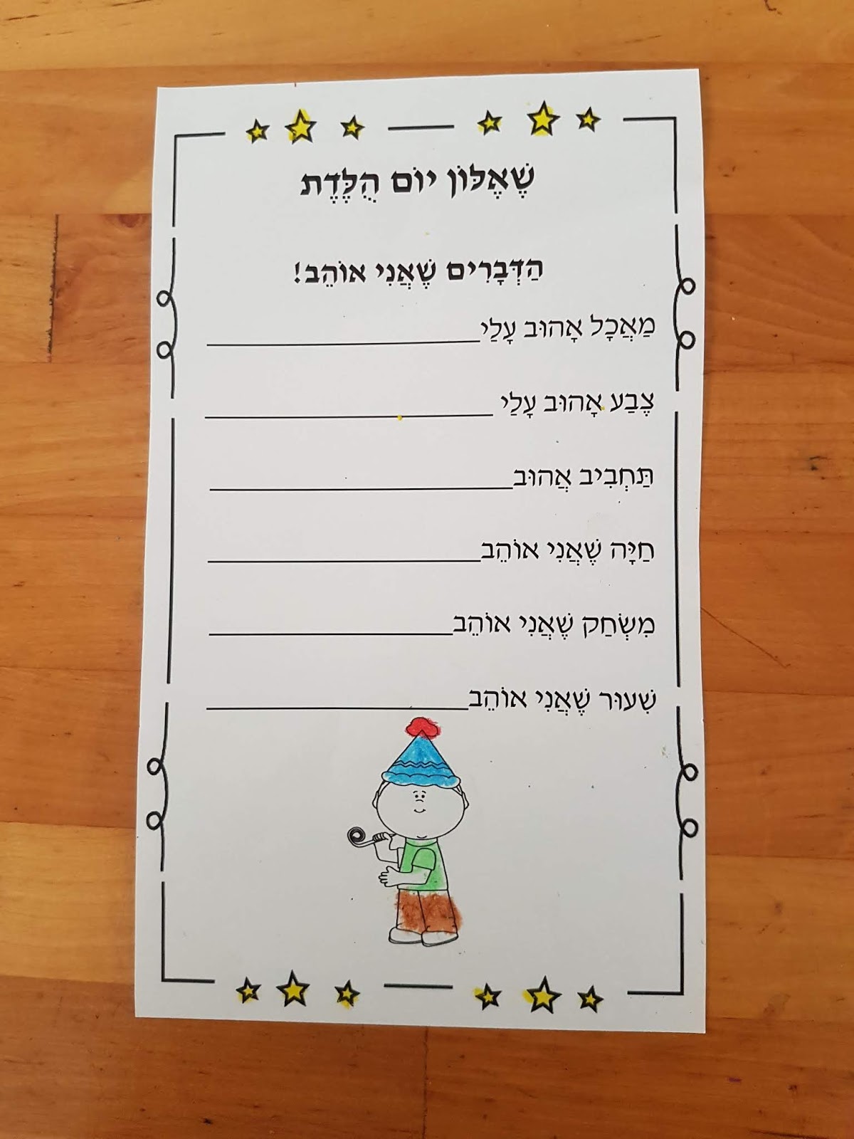 1. טרם יום ההולדת כל ילדי החודש יוצאים עמי לשעת הכנה. בזמן הזה הם ממלאים את "שאלון יום ההולדת" ואת דף "יום הולדת שמח".